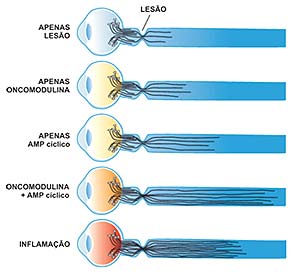 Mas a grande surpresa surgiu há três meses, quando a revista Nature Neuroscience publicou o estudo de um grupo norte-americano liderado por Larry Benowitz, da Universidade Harvard. A equipe revelou que um dos fatores positivos para a regeneração era exatamente o que se acreditava ser negativo: a inflamação. Partiram de experimentos feitos anteriormente por outros autores, conceitualmente semelhantes ao do grupo brasileiro, nos quais se enxertavam macrófagos nas proximidades de uma lesão do nervo óptico, obtendo regeneração das fibras lesadas.