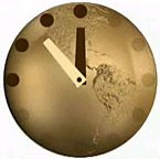 Imóvel desde 2003, o relógio, instalado na cidade americana de Chicago, foi adiantado para 23h55. Nunca, desde o final da Guerra Fria, o relógio esteve tão próximo da meia-noite, hora que representa a extinção da humanidade. A última mudança do relógio aconteceu quando os Estados Unidos se retiraram do Tratado de Mísseis Antibalísticos, em 2002, em meio a ameaças de compra de armas nucleares por terroristas.