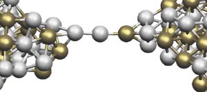 Pela primeira vez, foi observada diretamente uma nanoliga metálica. O fio, de dimensões nanoscópicas, formado por poucos átomos de ouro e prata enfileirados, foi obtido experimentalmente por pesquisadores de três instituições cientificas brasileiras. Os resultados da equipe, considerados muito importantes, abrem uma nova linha de investigação nas áreas de nanociência e nanotecnologia. O artigo foi publicado em Nature Nanotechnology.
