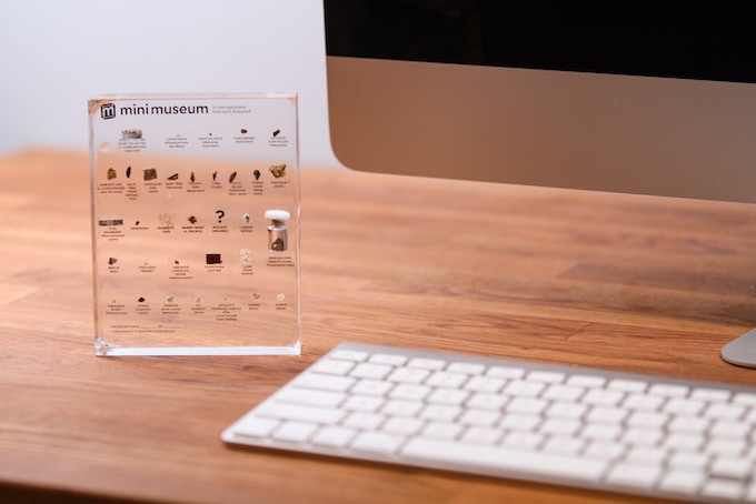Hans teve a ideia do Mini Museu. É um bloco de resina com diversos exemplares de vários materiais. Desde o revestimento da Apollo 11 (que foi autenticado pelo próprio Buzz Aldrin) até um dente de Tiranossauro Rex, pedaço de chifre de um Triceratops, uma lasquinha de cérebro humano etc. Todo material, garante Hans, é autêntico.