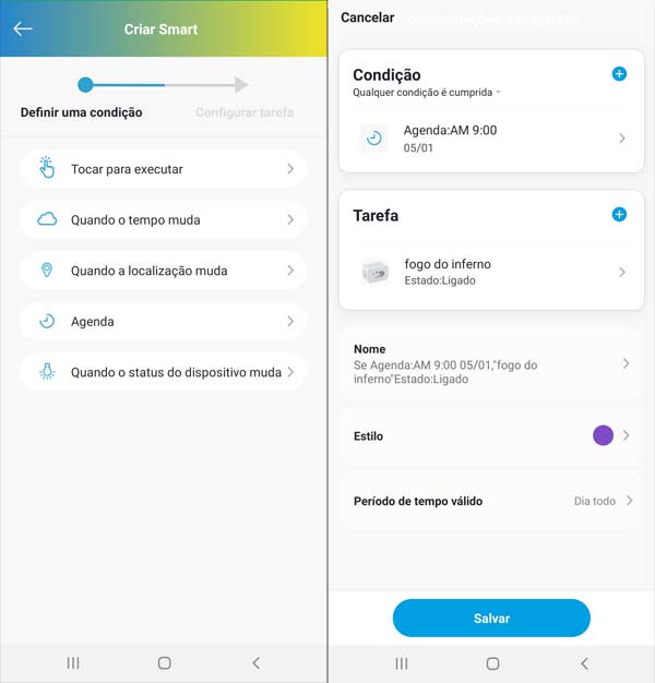 Claro, eu poderia ter colocado nome até de Teletubies, o comando seria “ligue <nome>”, “desligue <nome>”. Não apenas isso, dá para controlar direto do celular, criando uma programação para ativar a determinada hora do dia, por exemplo.