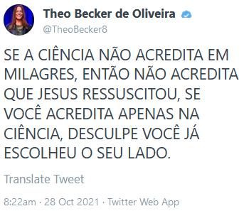 Tudo bem, ele é um homem de fé. Ciência não serve pra nada e se você só acredita na Ciência está afastado de Deus. Ok, é uma opinião, e como toda opinião deve ser respeitada, ainda mais quando ele se vive o que prega.