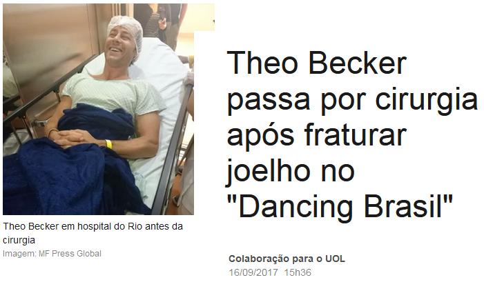 Por exemplo, ele participou do Dancing Brasil, exibido pela Record. Infelizmente, ele terminou em terceiro porque sofreu uma lesão no joelho em sua última apresentação. Obviamente, sendo um homem de fé, achando que quem acredita na Ciência se apartou de Nosso Senhor Deus, CA-LARO, ele foi para uma igreja, certo?