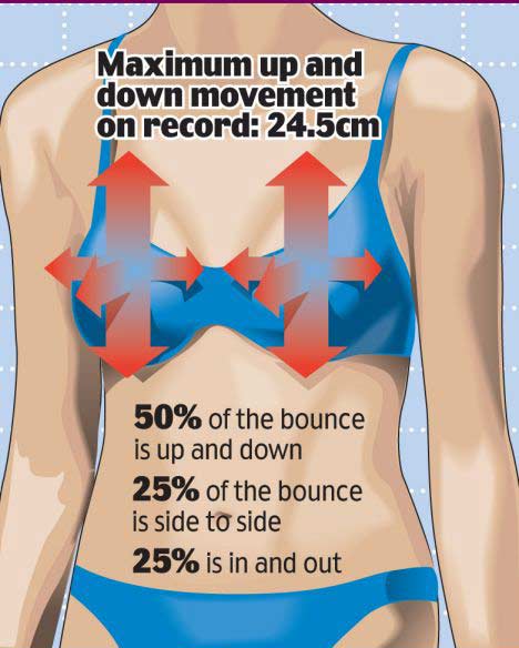Imagine como deve ser divertido colocar alguém numa esteira e ficar vendo peitos balouçantes! A rigor, já faziam essa pesquisa em 2008, tendo sido até matéria do Daily Mail, mas é tão velho que só no Wayback Machine pra poder ler. Nele podemos ver até as estatísticas de como os peitos balançam: