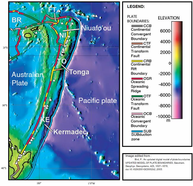Há cerca de 5-6 milhões de anos, a extensão da crosta começou, então, há cerca de 4-5 milhões de anos, a expansão do fundo do mar em arco começou no cume Lau-Havre. Este foi o nascimento da Placa Tonga-Kermadec, e o arco-reflexo é ter um lugar em que as placas ficam se “esfregando”, o que gera vulcanismo submarino, e isso vai até o ponto em que gera uma erupção vulcânica embaixo do mar, e isso não é legal.