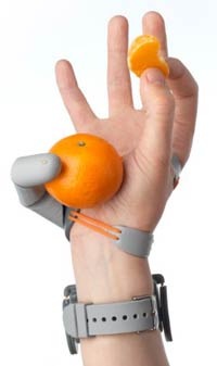 Clode e Makin imprimiram em 3D um polegar que pode ser preso a uma mão. O motor é preso ao pulso e a bateria na parte superior do braço. Os sensores de controle estão ligados aos dedões dos pés, ou seja, para funcionar, tem que contrair os dedos dos pés se quiser abrir e fechar o polegar extra, algo muito prático, não?