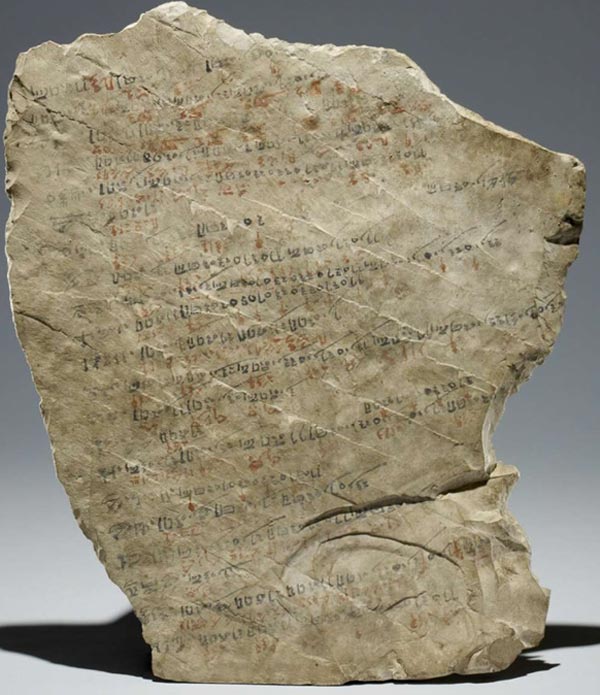 Um dos óstracos mais importantes é oque tem o código BM EA 5634, um óstraco feito de calcário que atualmente está no British Museum, tendo sido encontrado no sítio arqueológico de Deir el-Medina, na Antiga Tebas. Neste óstraco – que tem 38,5cm de altura e 33 cm de largura (dimensões na parte mais larga, já que ele não está direitinho) – está inscrito “Ano 40” do reinado de Ramsés II, rei da 19ª Dinastia,  o que nos situa em 1250 A.E.C.