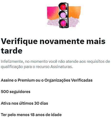 Com o Twitter Blue (que eu chamo de “Selo Viagra”), basta você pagar uma quantia e poderá colocar textos de até 10 mil caracteres, formatar com negrito e itálico, colocar vídeos fullHD longos e não ver muita propaganda. Mas não é só isso, você ainda pode entrar no programa de monetização, mas precisa cumprir certos requisitos.