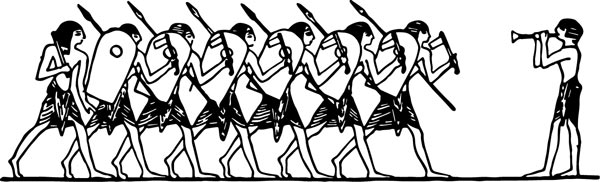 No antigo Egito, as trombetas eram usadas em ambientes militares por serem instrumentos com som alto e distinto, sendo portanto, útil na sinalização e repasse de comandos cuja simples ordem verbal não seria compreendida. Era um som assustador para quem não estava acostumado com elas, ou seja, para soldados do exército adversário. Imagens da época de Ramsés II e III, por exemplo, mostram soldados tocando trombetas em cenas reais de batalha.
