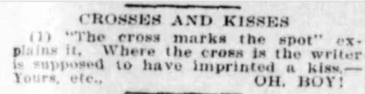 Essa conta se tornaria popular, sendo divulgada por jornalistas muitas vezes nas décadas seguintes. E pode conter alguma verdade. As lavadeiras e os verdureiros que popularizaram o X como um beijo em seus bilhetes de amor faziam parte de uma comunidade recém-alfabetizada no século XIX, para quem usar um X como assinatura provavelmente era familiar.