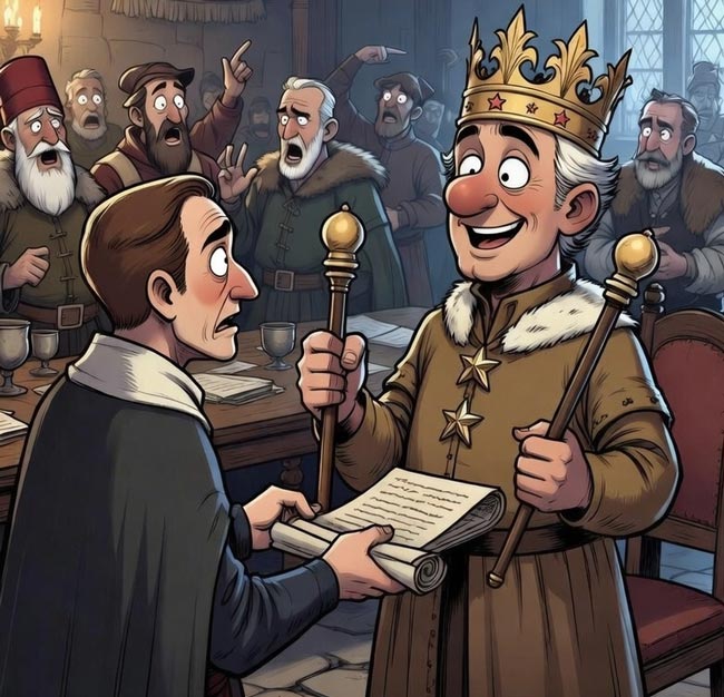 Era uma vez um homem que acordou numa bela manhã de setembro de 1354, como sempre acordara nos seus 38 anos de vida: um próspero comerciante de Siena, ocupado com os negócios de sempre, preocupado com lucros, prejuízos e as pequenas intrigas da tosca República de Toscana. O mundo dá voltas mas de vez em quando ele capota, e quando a noite caiu sobre aquele mesmo dia, ele já se acreditava o legítimo rei da França. Não houve febre, não houve delírio, não houve nenhum cogumelo mágico medieval que justificasse a transformação. Houve apenas uma convocação, uma conversa e uma revelação tão absurda que parecia ter saído diretamente de uma novela.