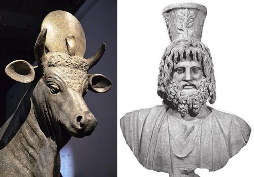 A rigor, os gregos desdenhavam de deuses com a forma de animais, pois seu ideal de perfeição era antropocêntrico, com o Homem sendo o centro de tudo, mas como o culto a Ápis estava tão inserido na sociedade que antropomorfizaram-no e o adicionaram ao seu próprio panteão de deuses. Inicialmente, esse novo-velho deus recebeu o nome Aser-hapi (ou Osiris-Apis), que se tornou Serápis até que mais tarde foi tido como sendo o próprio Osíris que transferiu o seu ka (o espírito ou força-vital) para um touro.