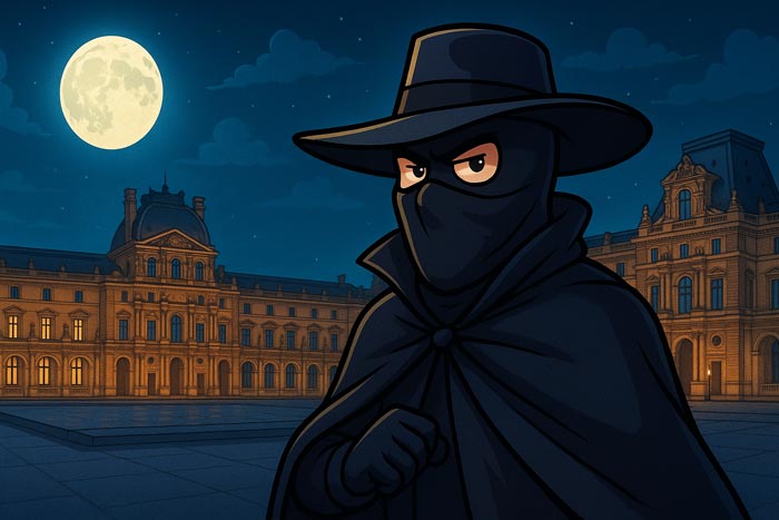 O Louvre aguarda o homem cujas mãos pecaminosas irão despojar o magnífico museu de seus tesouros. O homem é audacioso, já falei, e ele irá colocar sua audácia e sua ousadia sob teste e ele conseguiu, de fato, seu intento ao realizar o roubo mais espetacular de sua época.
