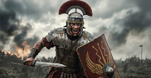 O soldado armado está em posição desafiadora. Mão na espada, o peito inflado retesando-se contra a armadura. As pernas em posição esperando para o combate. Aquele homem tem uma missão e quando todos os covardes, traidores e conspiradores o abandonaram, ele está lá, altivo, poderoso, o queixo trazia a decisão, a vontade, a coragem e a determinação dos mais valorosos guerreiros que alçaram ao cargo de centurião, pois, aquele homem em pé, esperando o derradeiro fim, é um centurião romano; mais do que isso, é um pretoriano, e está ali, para defender o seu protegido até o último suspiro, o nome causa medo, pois seus algozes sabem que não terão uma vitória fácil.